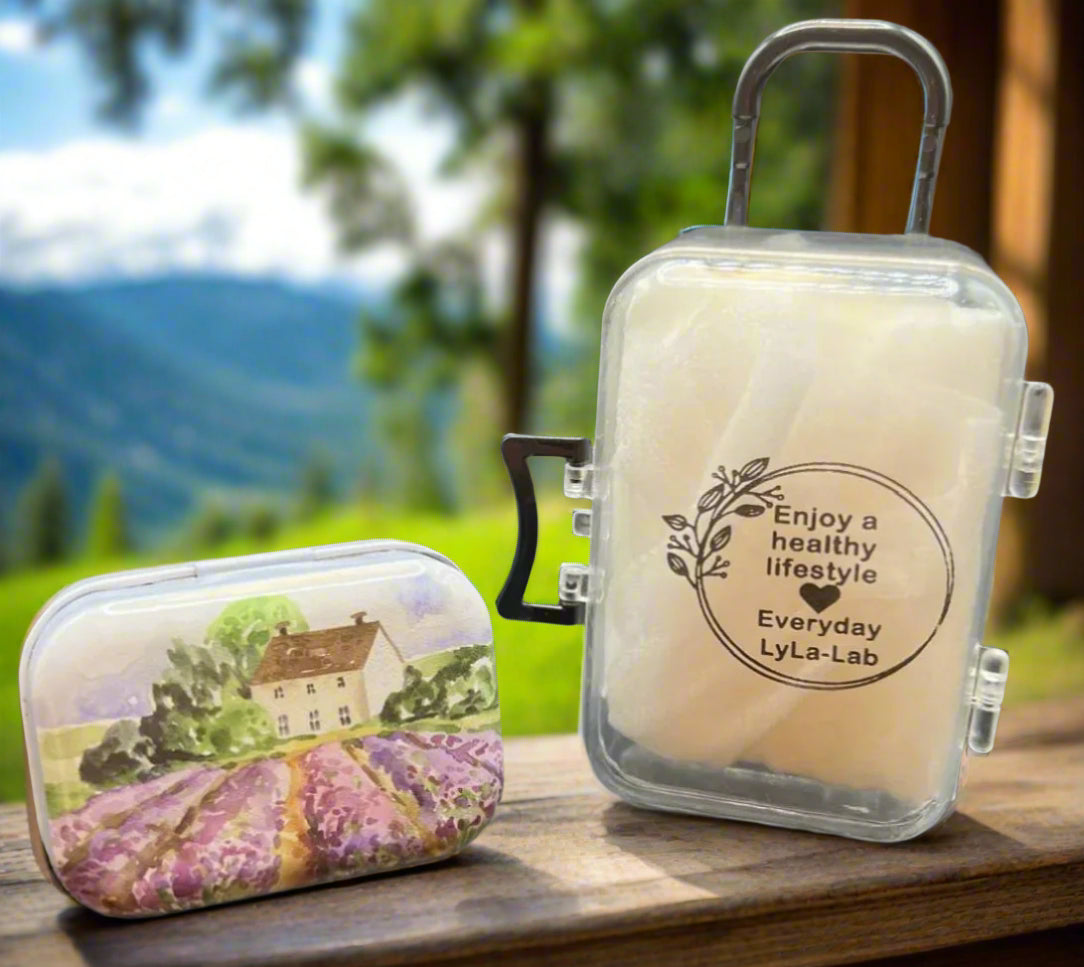 Say goodbye to harsh alcohol gels—wash your hands anywhere with our natural single-use mini soaps, made from goat milk, honey, and lavender essential oil. Perfect for kids and adults, these gentle soaps come in eco-friendly, reusable cases designed for convenience and sustainability.